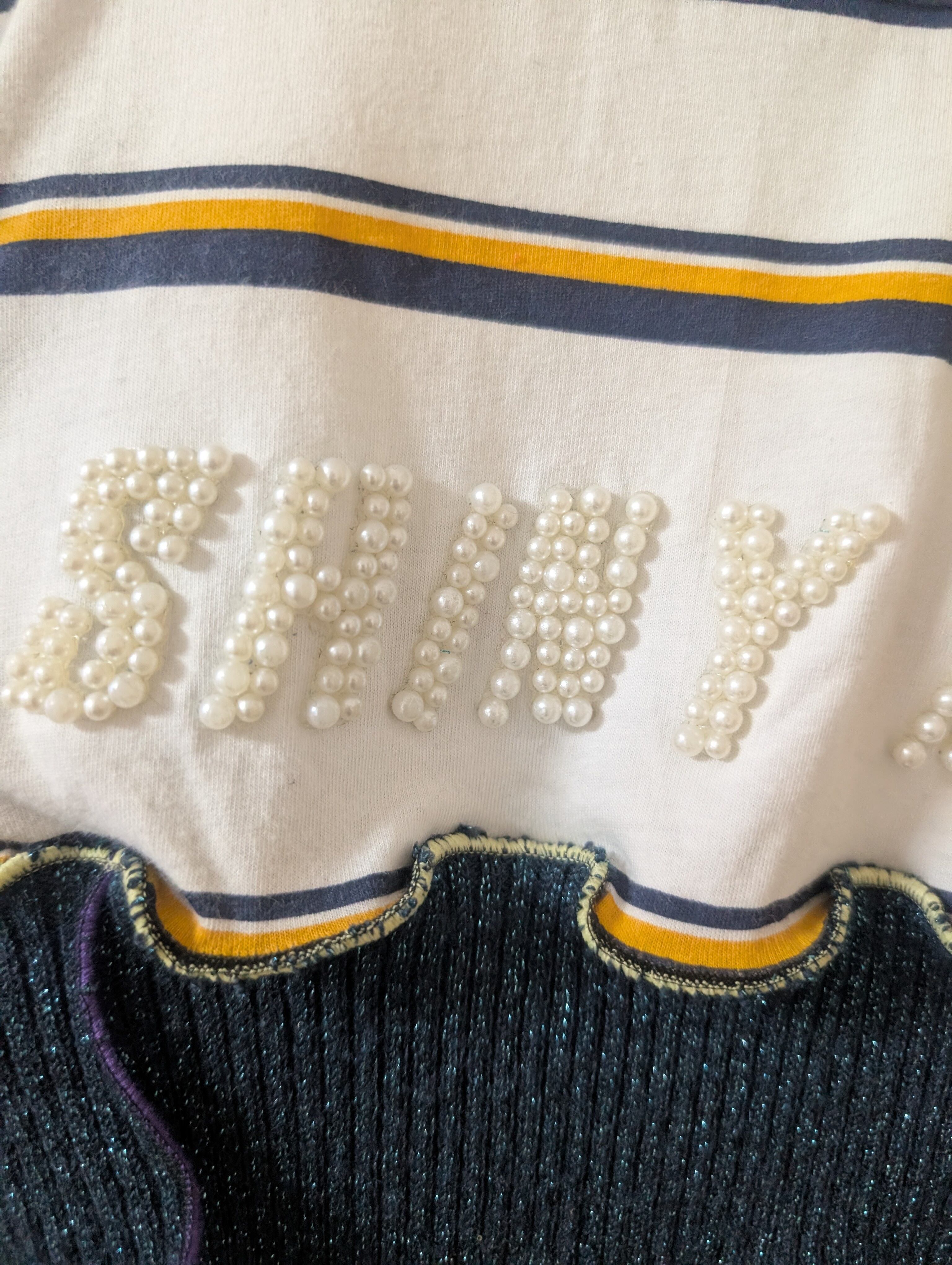 - 装飾: パール風のビーズで「SHINY」と刺繍