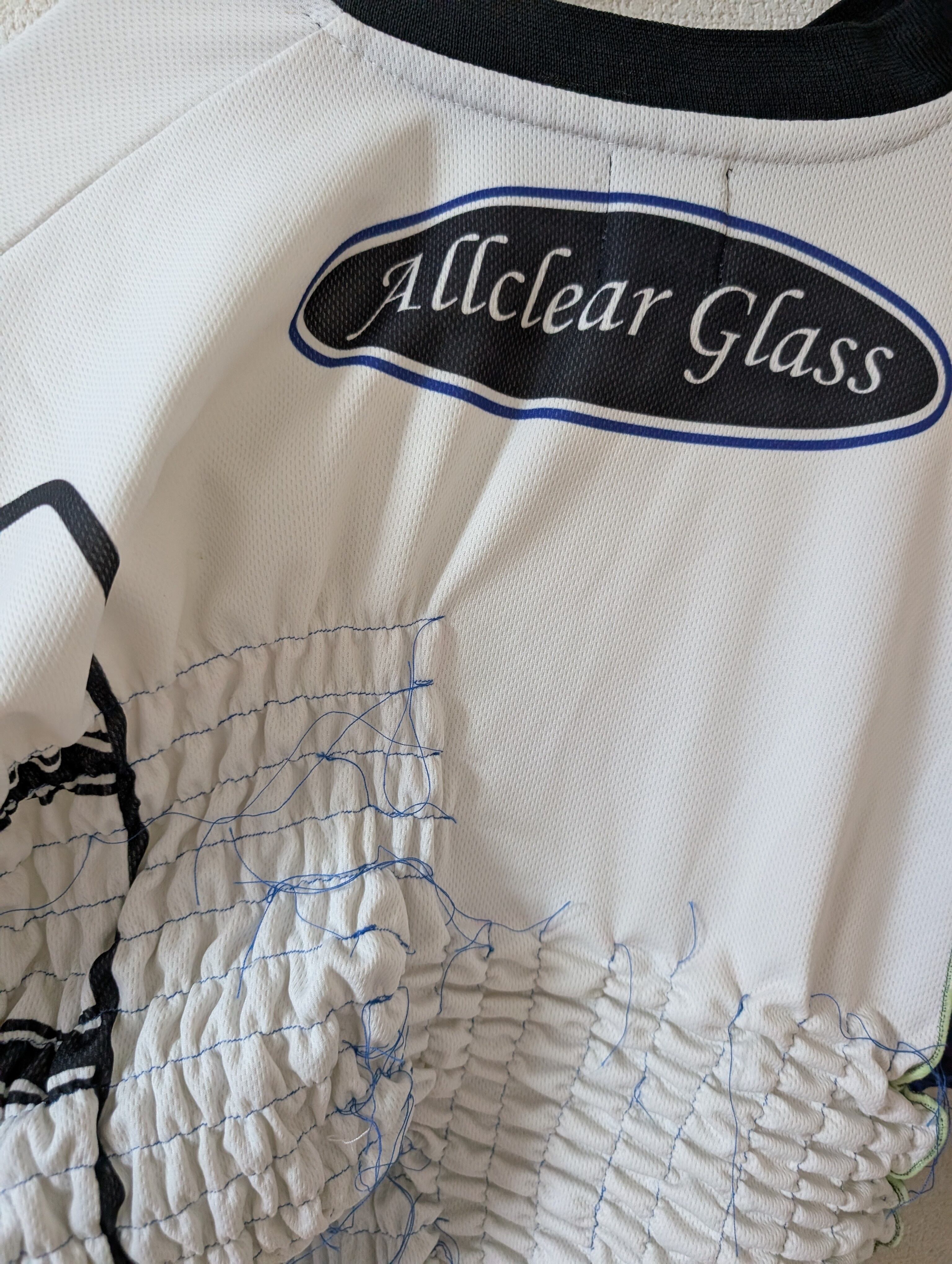 スポーツデザインのカジュアルTシャツギャザーをいれて、ワンビースにしてみました