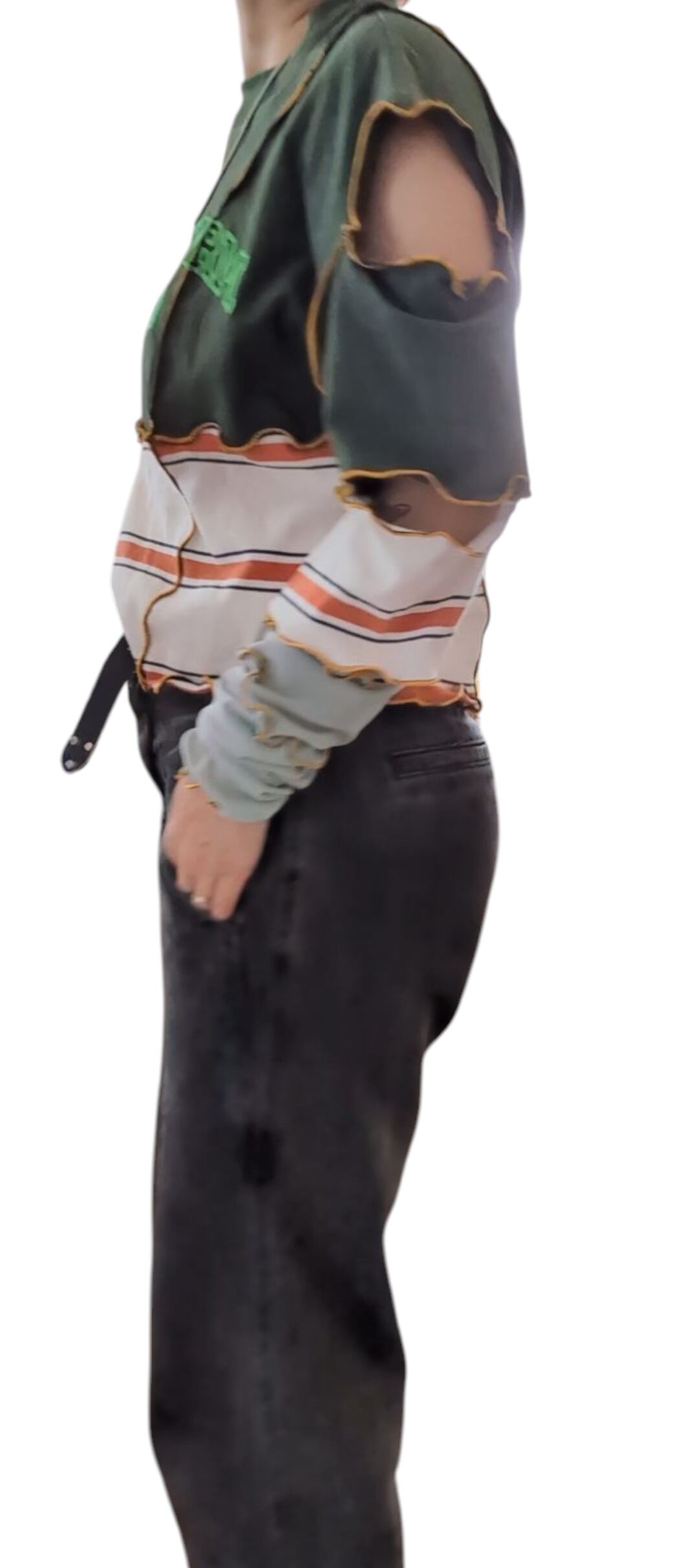 ユニークなフリルデザインのクロップドTシャツ、個性的なスタイルに最適。
