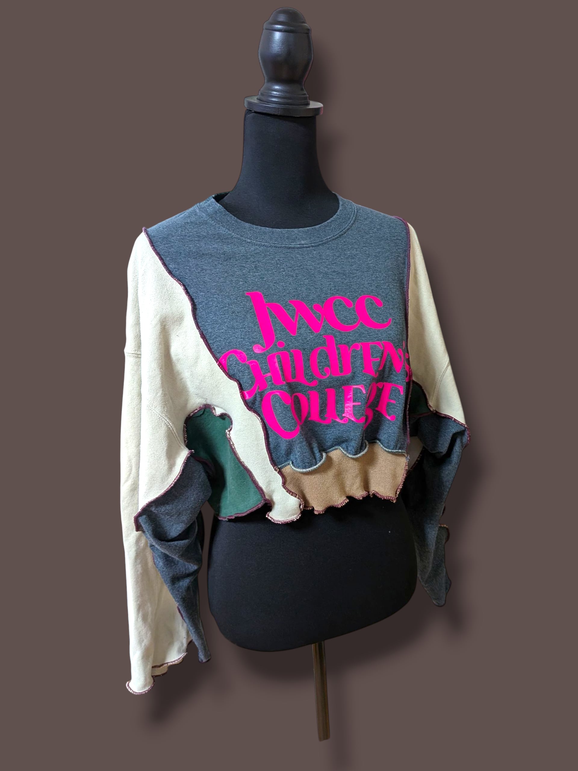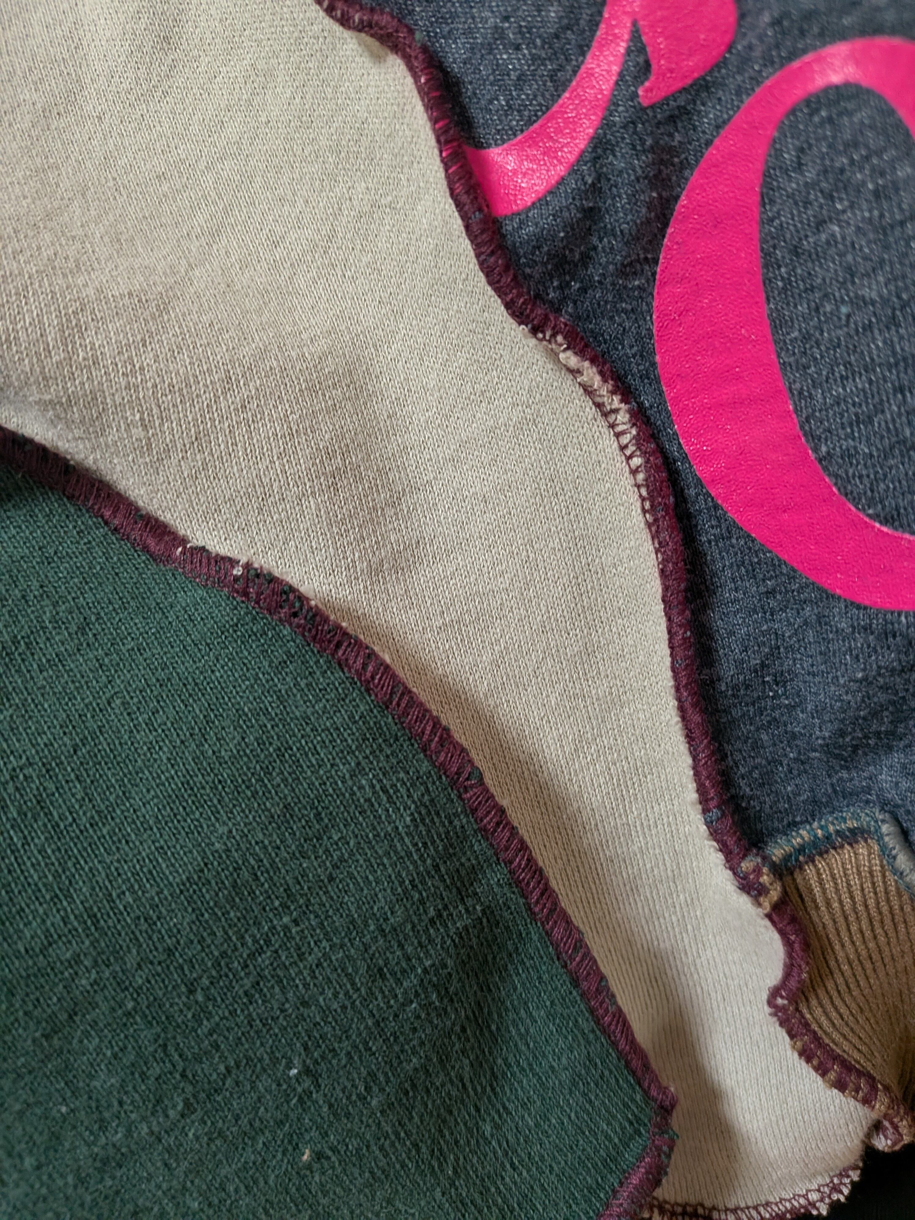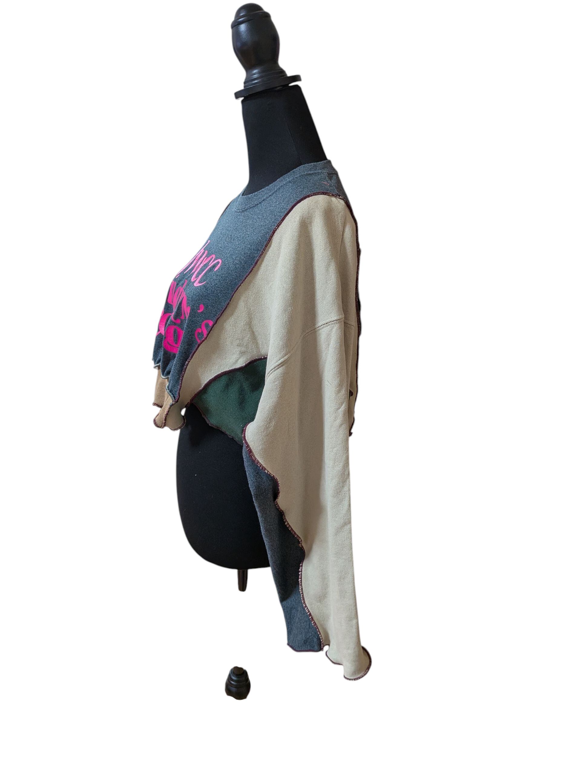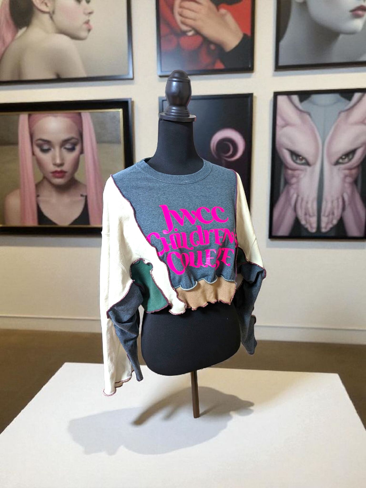 パッチワークの色彩が生む立体感と、フレアスリーブの揺れが特徴。