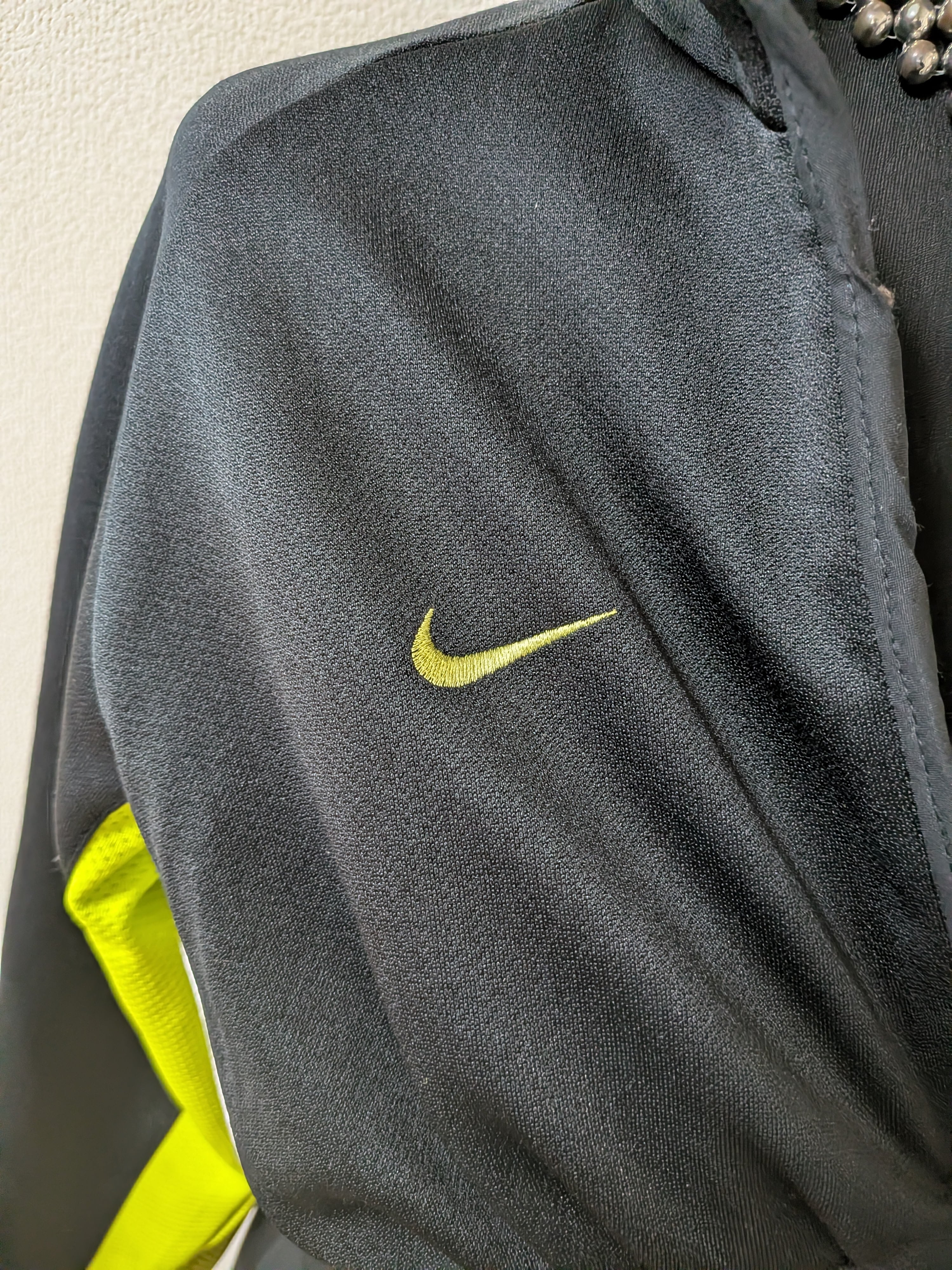 古着リメイク ジッパー付きのジャージ、ブラックとイエローのコントラストが特徴
