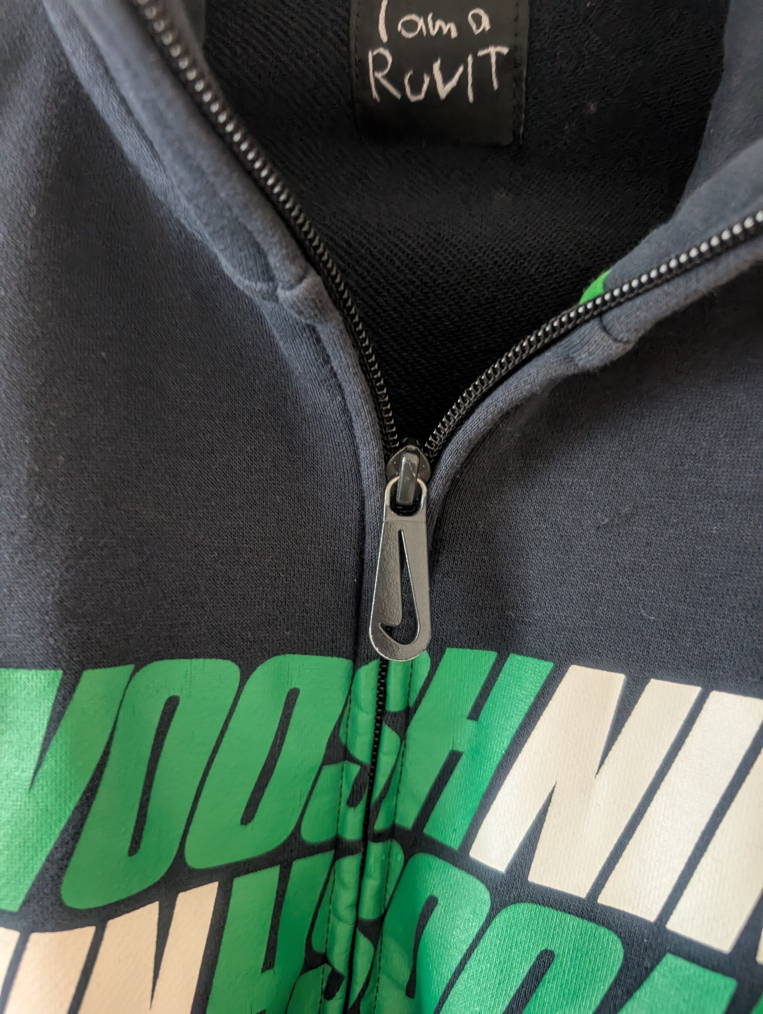 古着リメイクです。ジッパー付きスウェット。少し腕を太めにしてメッシュスリーブデザインにしてみました!